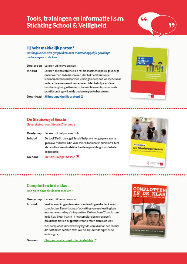 In deze handreiking hebben we materialen, gespreksvormen en achtergrondinformatie op een rij gezet om jou in school en/of in de klas handvatten te bieden om met jouw team of leerlingen op een veilige manier controversiële onderwerpen te bespreken.