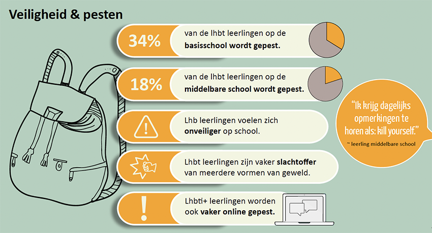 adviespunt@schoolenveiligheid.nl 030 285 66 16 Meer informatieDeze infographic laat in één oogopslag zien hoe lhbti+ leerlingen de veiligheid op school ervaren en wat er leeft bij leerlingen rondom het thema gender- en seksuele diversiteit.
