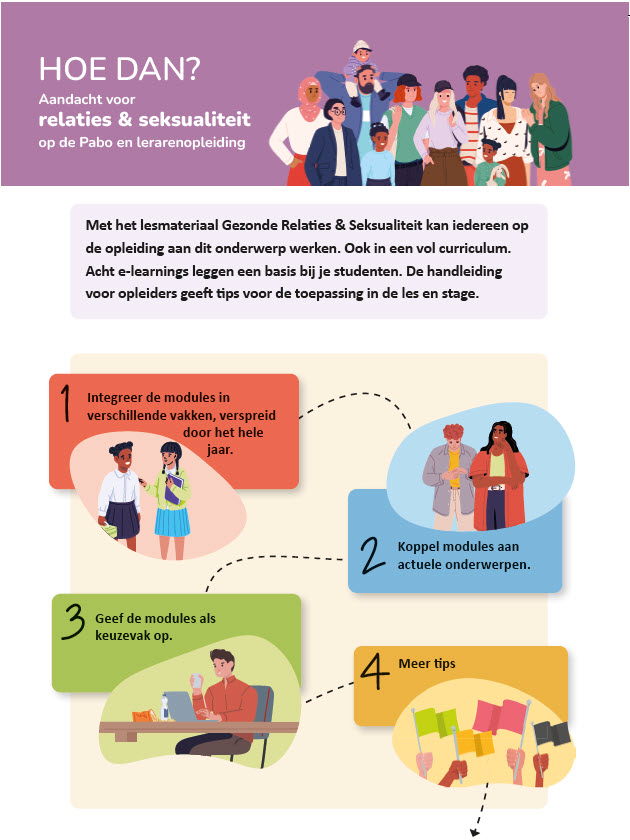 adviespunt@schoolenveiligheid.nl 030 285 66 16 Meer informatieJe wilt als lerarenopleider best aandacht besteden aan relaties & seksualiteit in je les aan studenten. Maar hoe pak je dat aan? Deze visual helpt je een beetje op weg.