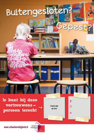 adviespunt@schoolenveiligheid.nl 030 285 66 16 Meer informatieMet deze voorlichtingsposters weten leerlingen de weg te vinden naar de vertrouwenspersoon en het aanspreekpunt pesten op school. Leerlingen worden via de posters duidelijk gemaakt bij wie ze kunnen aankloppen als ze met ongewenst gedrag zoals pesten te maken krijgen.